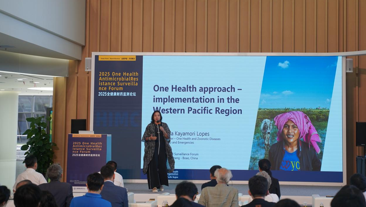 世界卫生组织西太区办事处技术官员Jessica Kayamori Lopes作了题为“Technical officer - One Health and Zoonotic Diseases Health Security and Emergencies(全健康与动物传染病健康安全和紧急情况)”的主旨报告,她指出,在过去一年中我们经历了各种区域性健康突发事件,从生物危害到自然灾害,再到各种传染病,这充分说明“西太平洋地区”不仅仅是一个占据全球三分之一人口的庞大地区,更是一个面临着多重健康威胁的地区。她特别提到,在今年5月份达成的《大流行病协定》中“全健康”理念已经得到了国际认可,这是一个具有法律约束力的国际协定,成员国之间达成共识,将“全健康”纳入预防、准备和应对大流行病的框架中。世卫组织通过加强区域合作机制,设立多个跨国工作组,聚焦在六大优先领域(包括AMR),并联合多国推动卫生部门与动物卫生部门协作,识别跨领域治理空白。目前,西太平洋地区已形成“政策-技术-社区”三级联动模式,通过法律协定、区域协作与国家实践,将“全健康”从理念转化为系统性行动,未来将进一步推动项目下沉至传统市场、农村社区,优先解决本地健康风险。